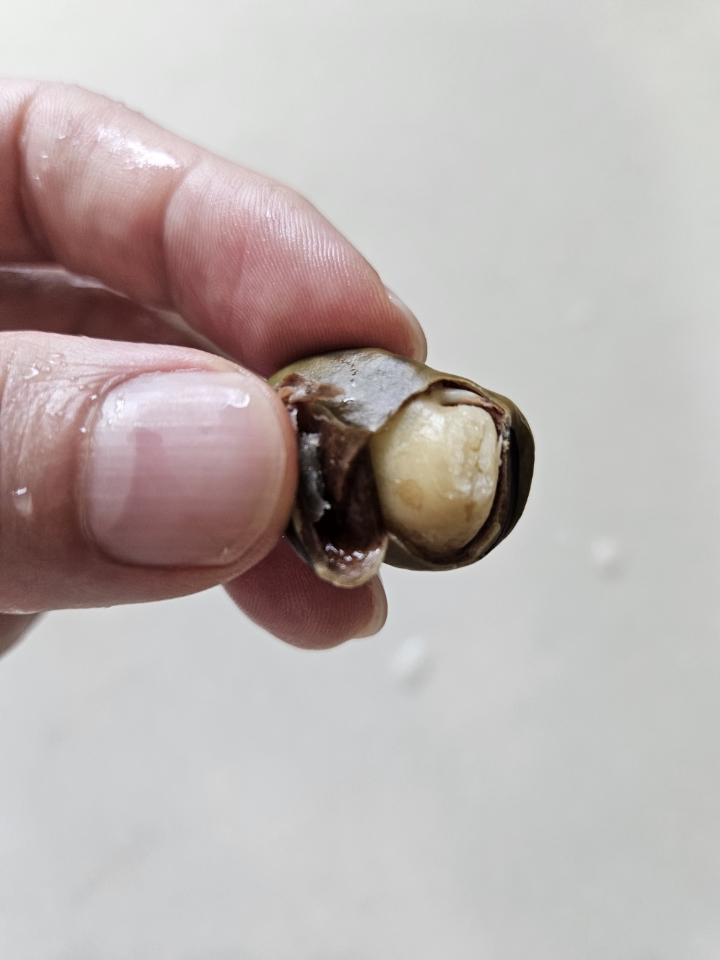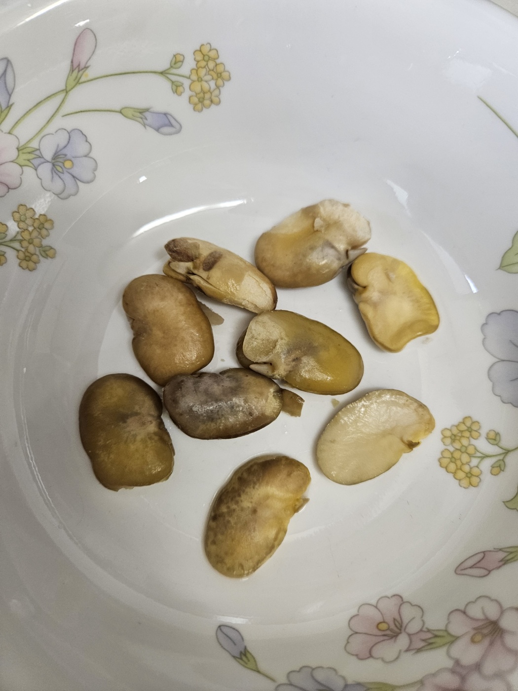 다음날 아침 물에 충분히 불은 파바빈입니다. 물에 불어 크기가 더 커졌습니다.